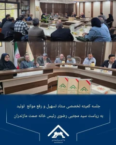 جلسه کمیته تخصصی تسهیل و رفع موانع تولید به ریاست سید مجتبی رضوی رئیس خانه صمت مازندران و همچنین با