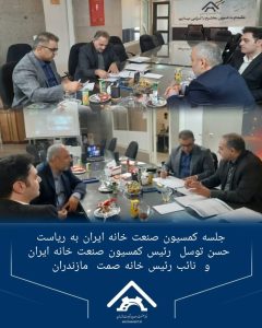 📌جلسه کمیسیون صنایع خانه صنعت، معدن و تجارت ایران به ریاست حسن توسلی، نائب رئیس خانه صمت مازندران، به تاریخ